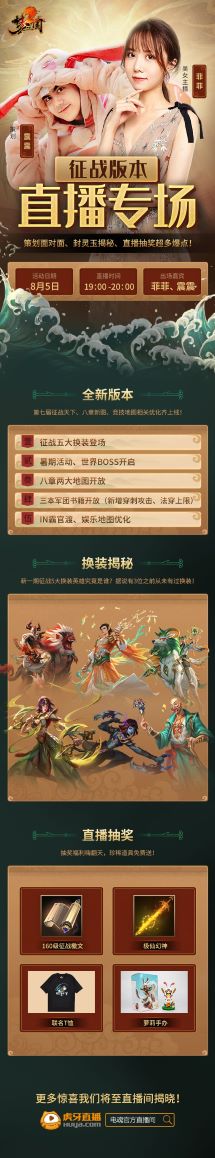 8月5号,直播间将会抽取幸运观众送上极仙幻神、160级新征战檄文、萝莉手办、联名T恤等超多好礼。抽奖福利嗨翻天,珍稀道具免费送。