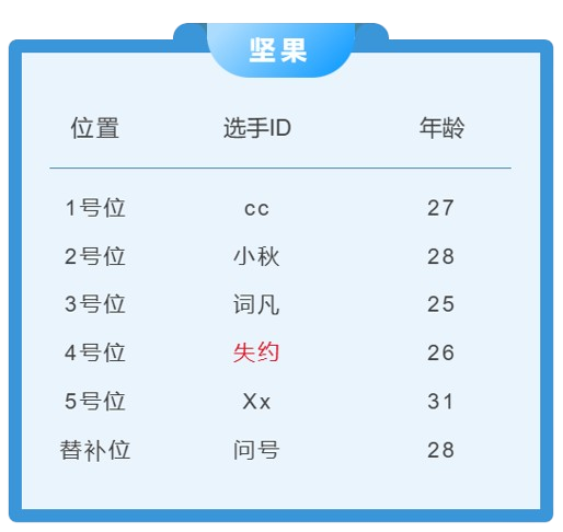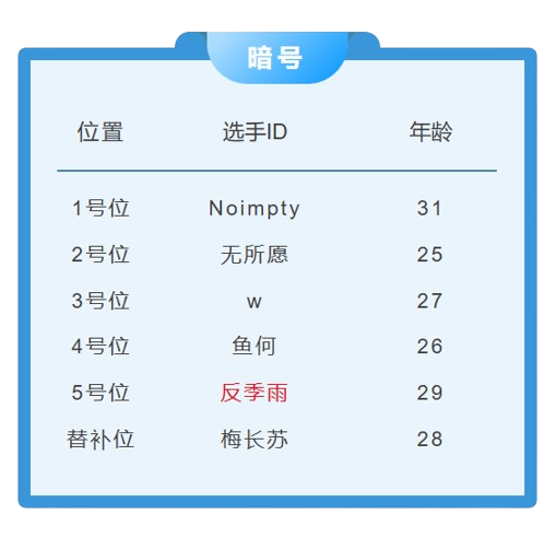 新增队员:【4号位】春城北、【5号位】特情、【替补位】无月