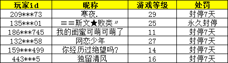 以下为本次部分惩罚名单,官方一如既往对游戏中的作弊行为进行严厉处理,并保留对第三方软件制作团队诉诸法律的权利,因此请大家远离第三方软件切勿以身试法,遵守公平竞技原则,共同维护和谐梦三!