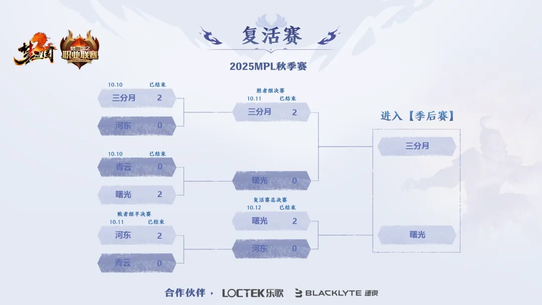 MPL秋季赛·复活赛赛段于上周末落下帷幕,季后赛四强名额最终揭晓,恭喜诗月、灵21、三分月、曙光杀入秋季赛决赛圈!